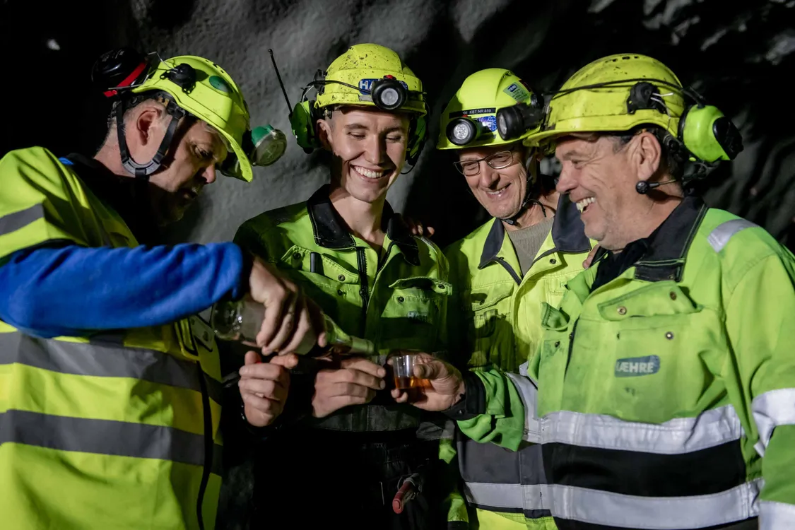 -Vi har hatt god produksjon heilt sidan første salve. Grunna undersøkingar i forkant, har vi hatt god oversikt over kva slags bergforhold me kunne forventa å støtte på undervegs. Bergforholda har vore noko betre enn føresett, og det har heller ikkje vore naudsynt med injeksjon. Eg vil trekke fram innsatsen som fagarbeidarane, lærlingane og geologane samt plassledelsen har lagt ned i arbeidet med tunneldrivinga. Dei har drive vel 1 mill m3 med fjell på 68 effektive veker. Dette er god produksjon, seier prosjektleiar Jonny Madsen, på veg inn til markeringa av gjennomslaget.